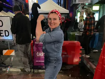 Smith, who identifies as bisexual, was channeling Rosie the Riveter with a red and white bandana tied around her head and a denim ensemble. A friend had told her about the night market, so she decided to check it out.